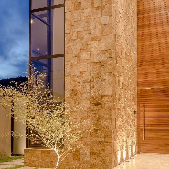 O A pedra topázio é um quartzito natural altamente resistente. Com sua tonalidade variando do amarelo ao amadeirado proporciona uma harmonia no ambiente, trazendo a natureza para sua casa. O seu tom sobre tom por ser um produto natural é responsável por tornar seu ambiente ÚNICO, pois cada pedra tem detalhes individuais que combinadas proporcionam luxo e requinte. E encontrada em diversos tamanhos e formatos, possibilitando diversas combinações, uma opção legal é montar um mosaico 3D com diversos tamanhos tornando assim o ambiente único e exclusivo.